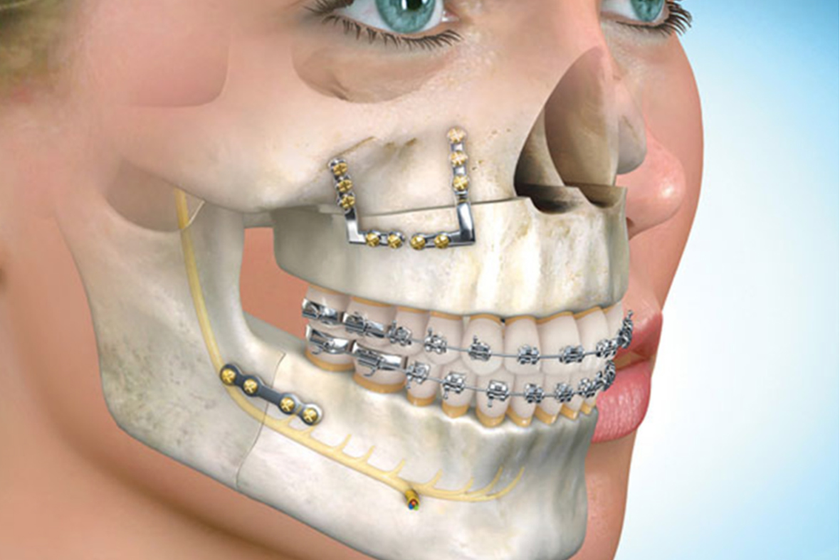 - Dişler ortodontik olarak düzeltilir ve sonrasında çeneler cerrahi olarak yeniden konumlandırılır.